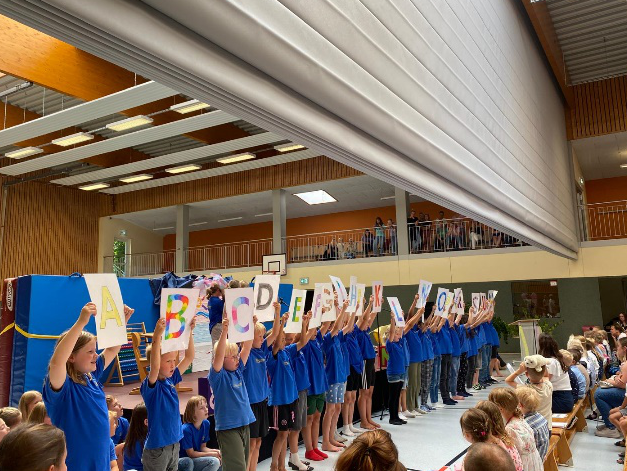 Ein besonderes Highlight war der traditionelle Abschiedstunnel: Alle Kinder der anderen Klassen sowie das Schulteam bildeten einen langen Spaliergang, durch den die Viertklässler unter Applaus hindurchschritten – ein symbolischer Weg in einen neuen Lebensabschnitt. Begleitet wurde dieser Moment vom Lied „Wir sagen euch Tschüss“, das von der gesamten Schulgemeinschaft gesungen wurde.