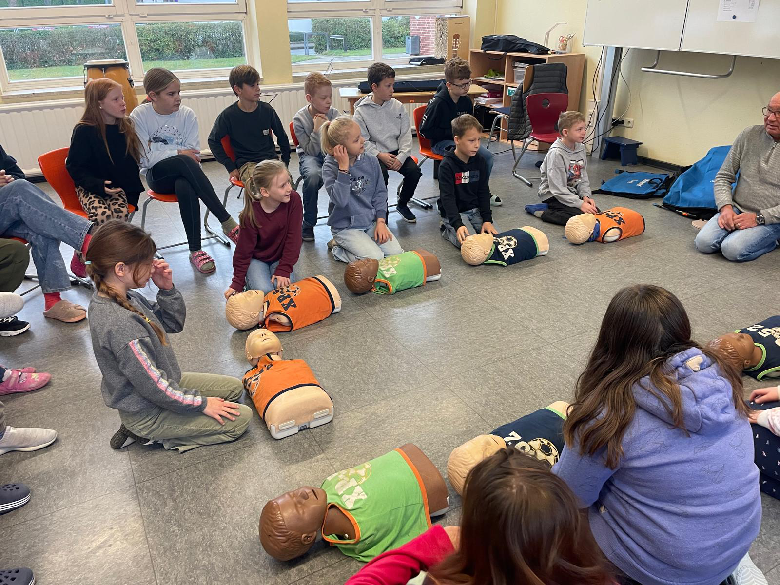 Die Schülerinnen und Schüler der Klassen 4a und 4b der Oste-Grundschule Heeslingen nahmen am Notfalltraining „Leben retten ist kinderleicht – wenn man weiß, wie es geht!“ teil. Das Training wurde von Frank Risy durchgeführt, der ein spezielles Konzept entwickelt hat, um Kindern die Grundlagen der Ersten Hilfe auf einfache und praxisorientierte Weise näherzubringen.