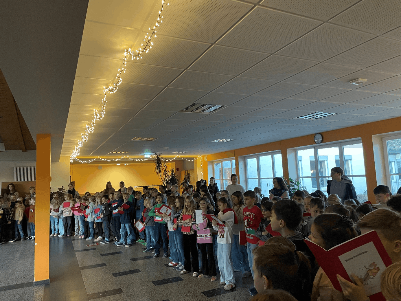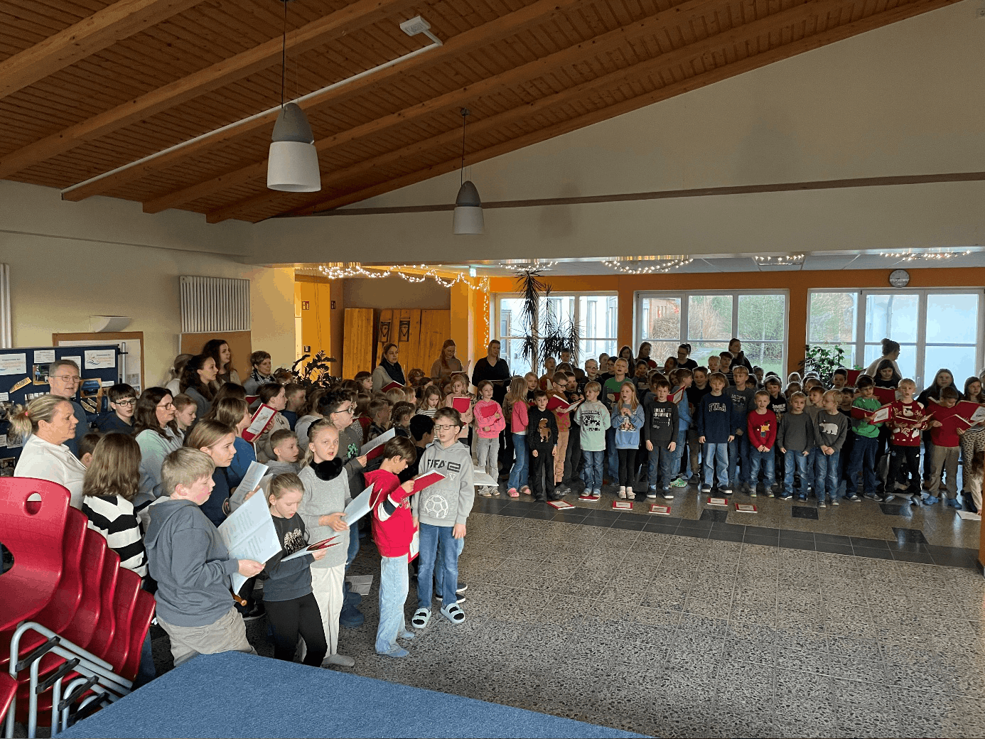Die Weihnachtszeit an der Oste-Grundschule Heeslingen ist jedes Jahr ein ganz besonderes Ereignis. In dieser festlichen Zeit kommen Schülerinnen und Schüler sowie das gesamte Schulteam regelmäßig zusammen, um in der weihnachtlich geschmückten Aula das traditionelle Adventssingen zu feiern. Mit strahlenden Augen und voller Vorfreude auf das bevorstehende Fest singen alle gemeinsam – unterstützt von den Musiklehrerinnen, die die musikalische Leitung entweder am Klavier oder an der Gitarre übernehmen. In diesem Jahr wurde das Adventssingen zusätzlich durch das wunderschöne Flötenspiel der Klasse 2a sowie durch die Flöten-AG bereichert.