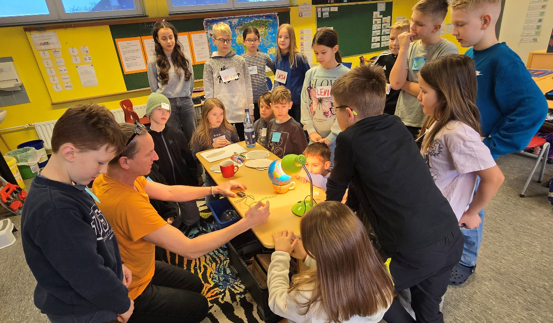 Unter dem Motto „Mein CO₂-Fußabdruck“ durften die Schülerinnen und Schüler der vierten Klassen ein spannendes Umweltprojekt erleben. Zu Gast war Frank Marquardt von der Deutsche Umwelt-Aktion e.V.. Ziel des Vereins ist es, Kinder und Jugendliche für Umweltthemen zu sensibilisieren und durch praktische Umweltbildung nachhaltiges Denken und Handeln zu fördern.